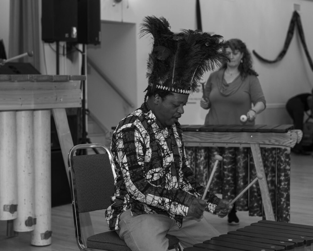 Our hands-on marimba training is rooted in Zimbabwean traditions while embracing contemporary performance practice. Students learn rhythm, teamwork, listening, cultural history, and stage presence.